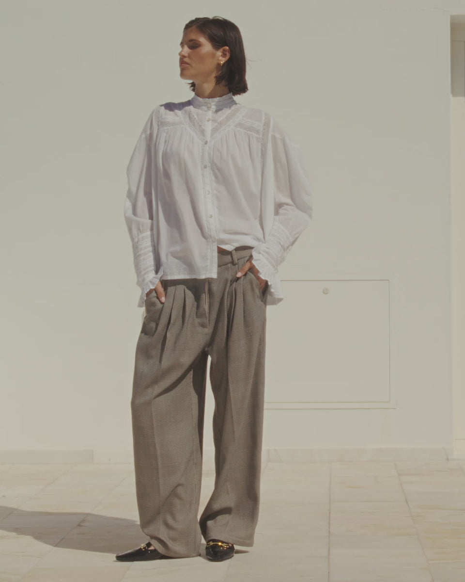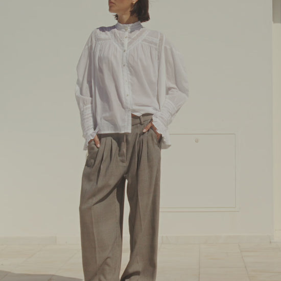 Crafted in white cotton, our blouse evokes the elegance of a Victorian-inspired silhouette, reimagined with modernity.